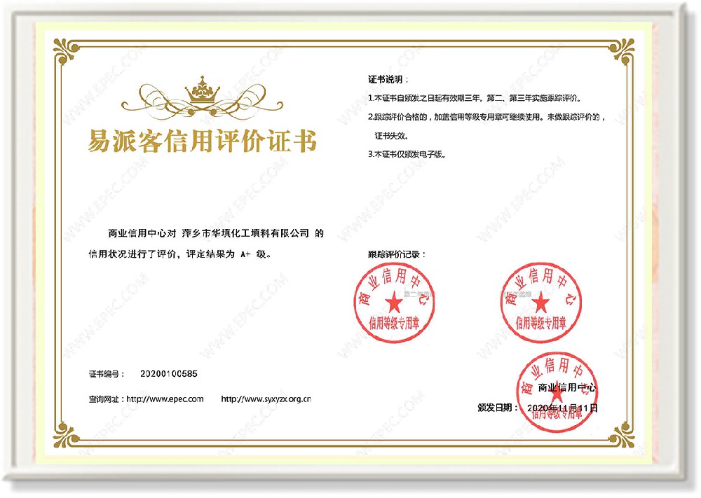 萍鄉市華填化工填料有限公司,位于320國道、109國道、浙贛鐵路、昌金高速公路貫穿其中,交通便利,是江西西部一顆燦爛明珠,創建于20世紀70年代初期,是中國石油天然氣股份有限公司“能源一號網”會員企業、中國石化物資采購電子商務網絡和中國海洋石油總公司采辦業務系統成員單位,是上海大學江西材料基因組工程產業研究院工業陶瓷產業創新聯盟基地,且通過ISO9001:2015質量管理體系、ISO14001:2015環境管理體系、ISO45001:2018職業健康安全管理體系認證的化工填料生產企業。公司擁有陶瓷、塑料、金屬填料、催化劑、活性氧化鋁、分子篩等產品生產線,現有固定資產3616萬元,占地面積3.8萬平方米。公司具有悠久的生產歷史、雄厚的技術力量和先進的生產工藝設備,可生產工業瓷球(支撐劑)、陶瓷、金屬、塑料質的規整、散堆化工填料及分子篩、催化劑、生化濾料、活性氧化鋁、石化助劑、活性炭、環保材料、耐火材料等系列的200多種規格型號產品。